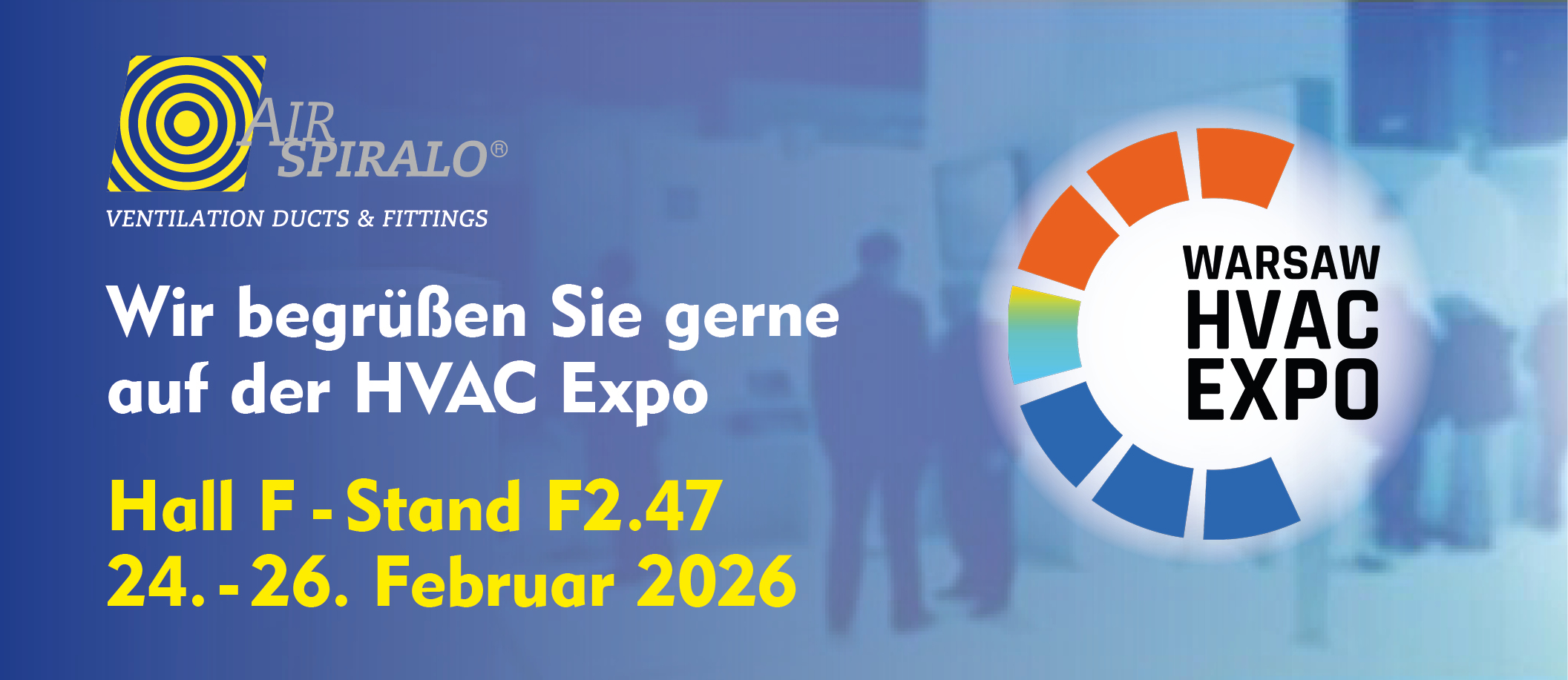Air Spiralo stellt vom 24. bis 26. Februar 2026 erneut auf der HVAC-Messe in Warschau aus. An unserem attraktiven Stand F2.47 in Halle F können Sie sich einen Eindruck von unserem Team und unseren Lüftungslösungen verschaffen. Wir freuen uns auf Ihren Besuch. Bis dann!