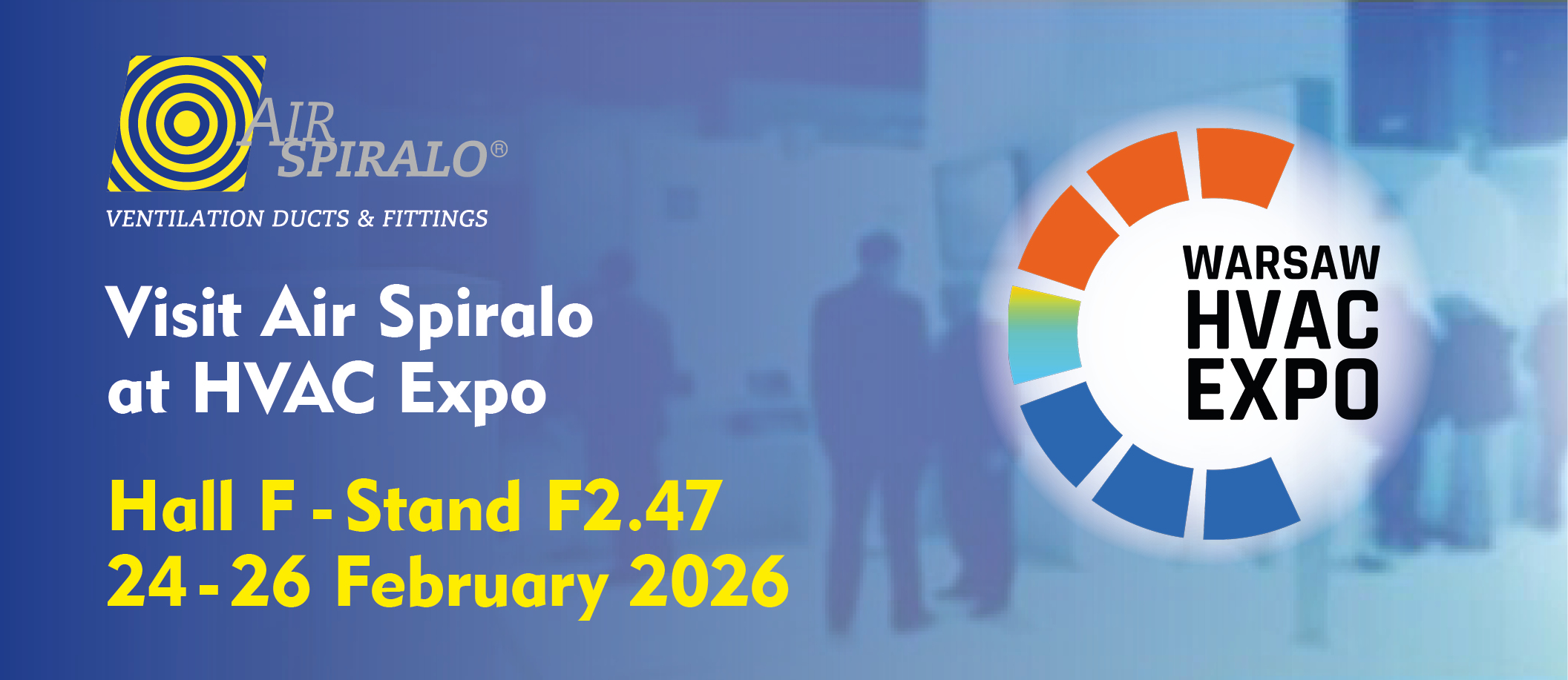 HVAC 2026 in Warsaw Air Spiralo will again be present as an exhibitor at the HVAC fair in Warsaw from 24.02.26 - 26.02.26. Our striking stand F2.47 in Hall F will show you the way to our team and our ventilation solutions. We look forward to your visit